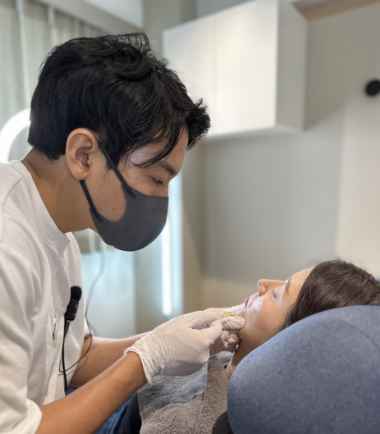 冷やしながら行うことで感覚が鈍感になりますが、針を刺すため、チクっとした痛みがあります。痛みが心配な方はオプション(別料金)として貼る麻酔や吸う麻酔(笑気麻酔)を用意しております。