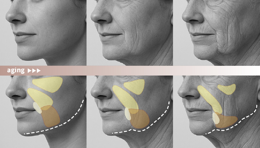 皮膚のたるみ・脂肪の下垂・骨の萎縮により、