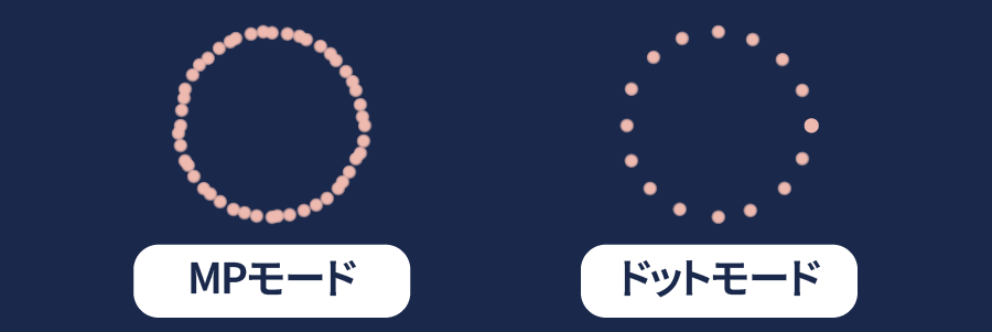 MPTはライナー状・サークル状にドットが出るドットモード(ドットが0.058秒の間隔で出る)とライナー状・サークル状に連続したドットが出るMPモード(ドットが0.000997秒の間隔で出る)が最大の特徴です。
