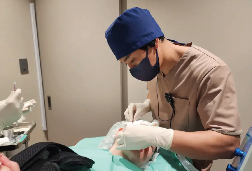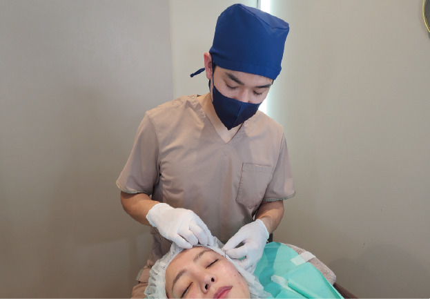 局所麻酔を行い、丁寧に糸を挿入します。施術時間は約30~60分程度です。