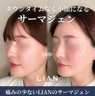 サーマジェンよりも深層がターゲットである、HIFUを併用することで、サーマジェンの引き締め効果に加えて、小顔効果を期待できます。HIFUとサーマジェンの併用治療である「ハイサーマ」という治療も行っているのでおすすめです。