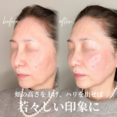 肌がリフトアップするとフェイスラインのもたつきが解消され、小顔や顔痩せ効果も期待できます。施術後は「痩せた?」と言われることがあるほど、見た目の変化がわかりやすい治療です。