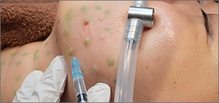 ショートスレッドとは、特殊な鍼を皮膚に挿入し、鍼の中に内蔵された髪の毛よりも更に細い吸収性の糸を埋め込みます。