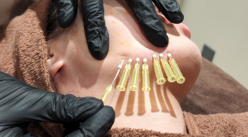 ショートスレッドとは、特殊な鍼を皮膚に挿入し、鍼の中に内蔵された髪の毛よりも更に細い吸収性の糸を埋め込みます。治療直後から即効性の引き締め効果を実感していただけますが、皮膚に吸収される(約6~8ヶ月)の過程で皮下組織に刺激を与え続け、創傷治癒効果をもたらし長期的なコラーゲン生成により、たるみ改善、新細胞による肌質の向上や弾力アップ、毛穴改善を目指します。