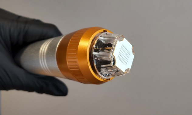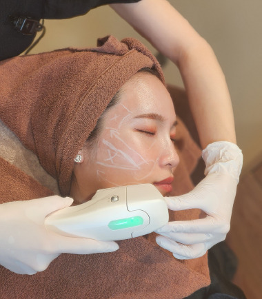 高密度超音波をドット状そして線状に真皮層に満遍なく熱を入れることにより浅層のタイトニング効果でハリ感、皮膚のたるみ改善が期待できるたるみ治療。