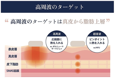 ハイフは焦点的に高温の熱を加えるため高周波とは違う効果をもたらします。