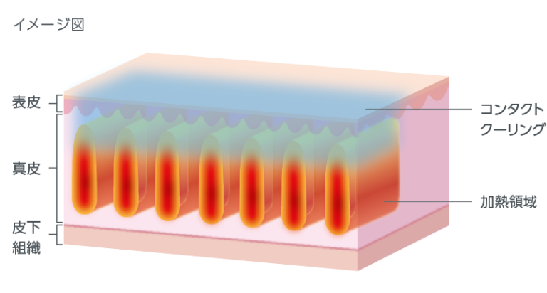 HIFUと異なりSMAS層への照射は行わず、ダウンタイムが少なく、安全性が高いのが特徴です。